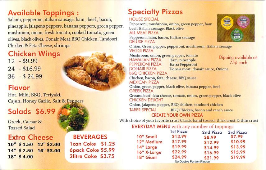 Welcome to A-1 Pizza, the shining beacon of flavor in Taber, Alberta! Located at 5217 48 Ave, this pizzeria is celebrated for its delightful menu that promises a culinary experience worth savoring. The menu boasts a variety of pizzas, where each pie features a perfectly crispy crust and a savory, tangy sauce that keeps patrons coming back for more.